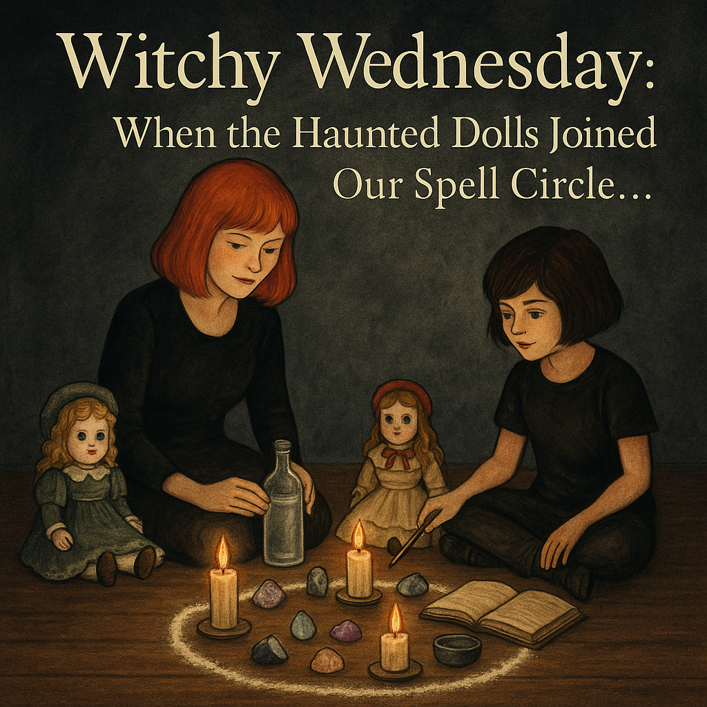 My younger daughter, G, added a fun twist to the ritual. She insisted on including two of our newer haunted dolls in the circle. Without hesitation, she carefully placed them within the space as if they’d always belonged there. And, well… that’s when the energy shifted.